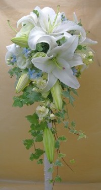 | 滝のように流れるラインが魅力のブーケです | ||