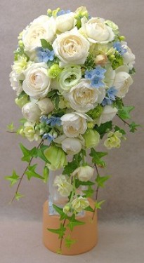 | プリザーブドフラワーのキャスケードブーケ | 25,000円+税~ (20,000円+税以上のプリザーブドフラワーブーケには、ブートニアがセットで付きます) |