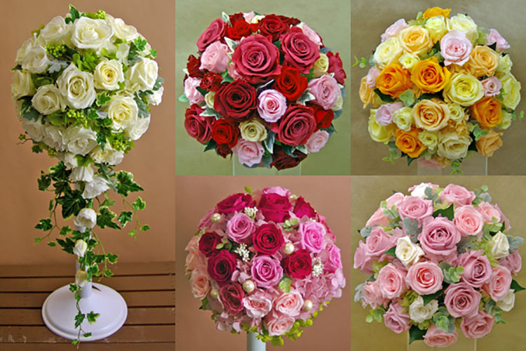 「バラを使って」「ピンク系で可愛く」「豪華にボリュームある感じで」等、