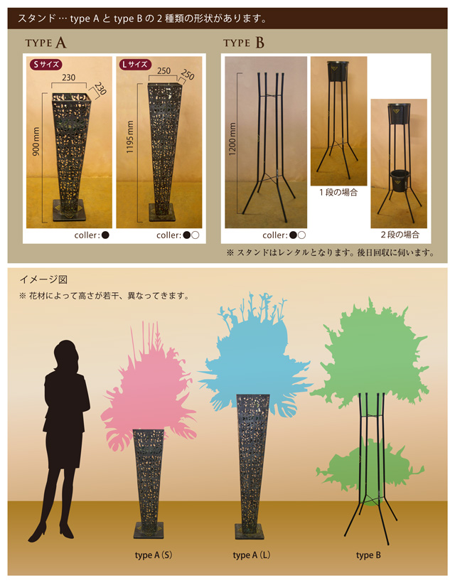 ※スタンド生花1段:税込11,000円~(葬儀用は税込16,500円~)・2段:税込16,500円~
