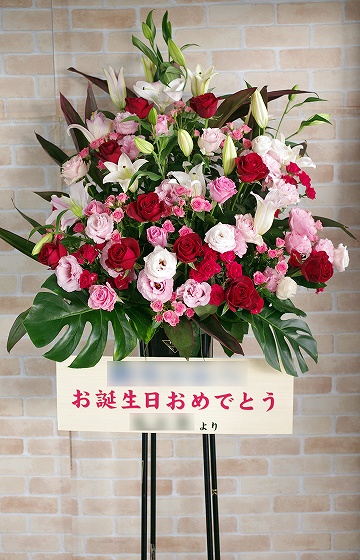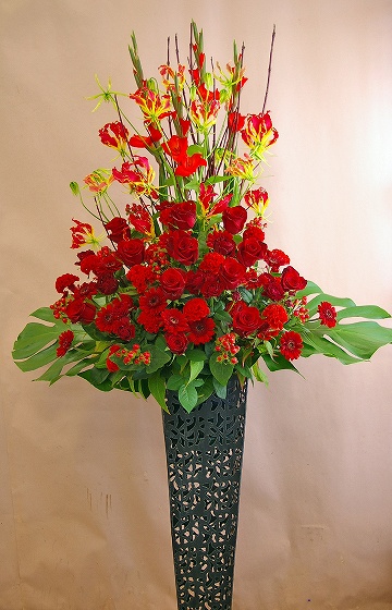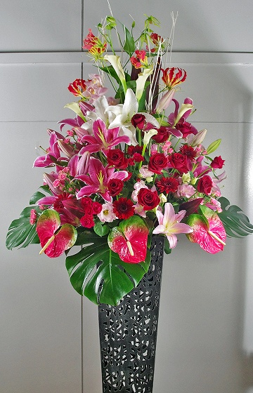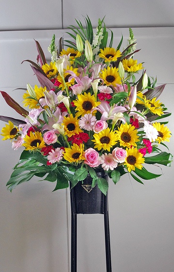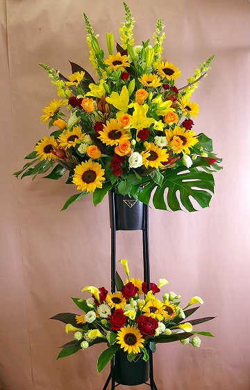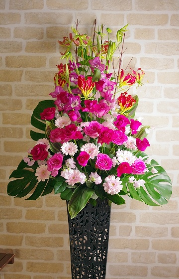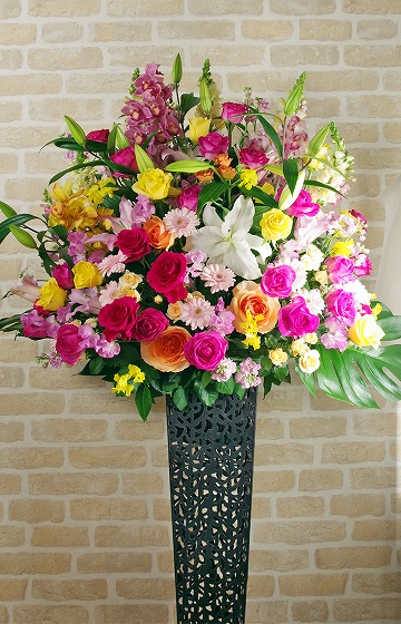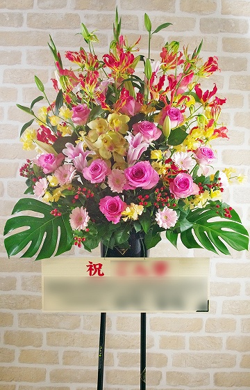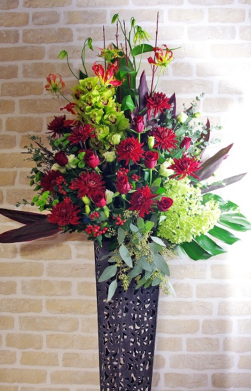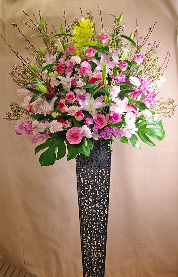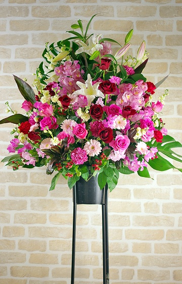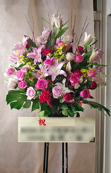 背も高く、ボリュームがあるスタンド生花は、贈り先のお店・イベント等の宣伝にも効果を期待できます。