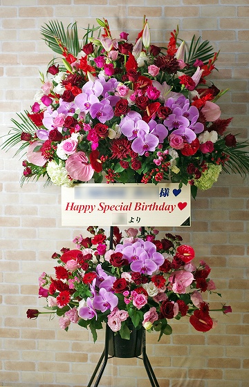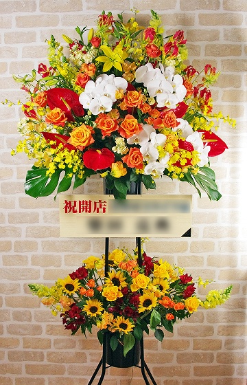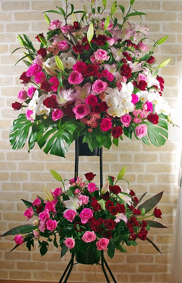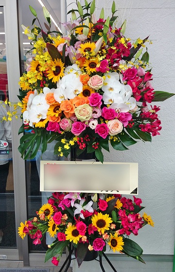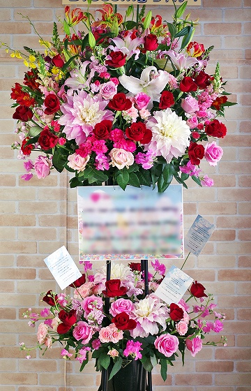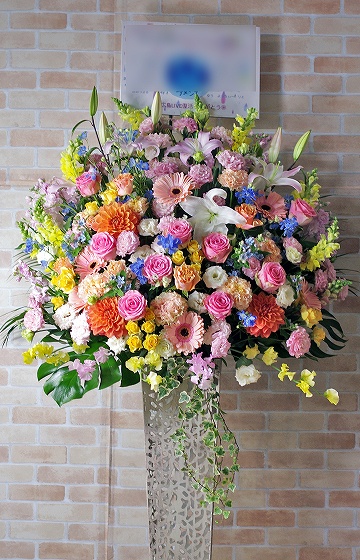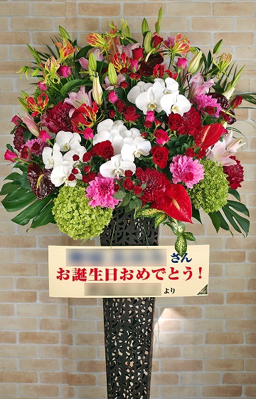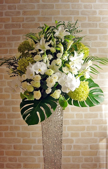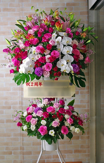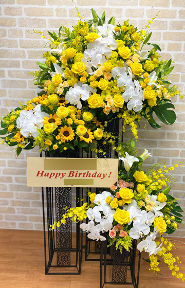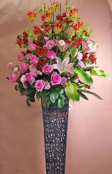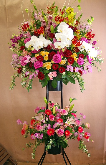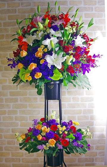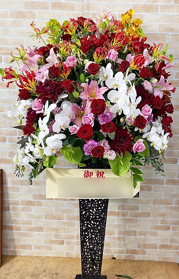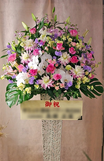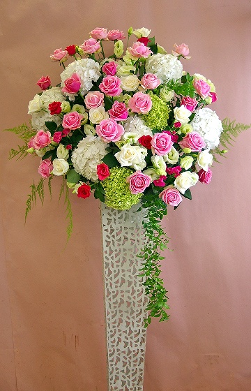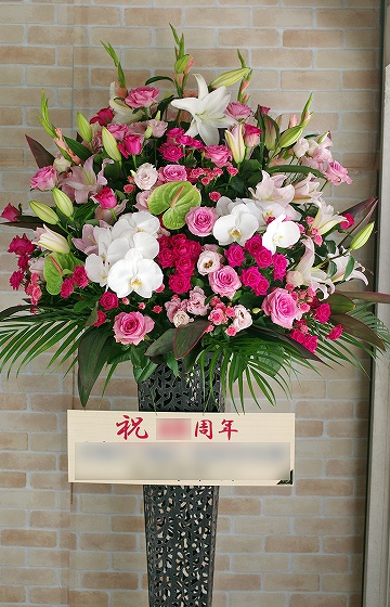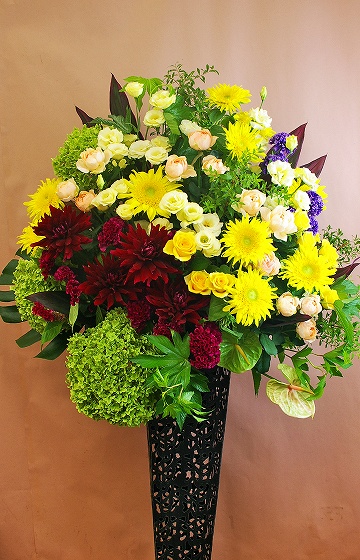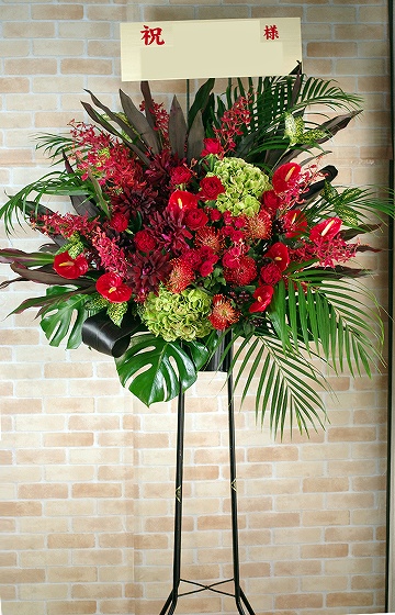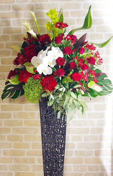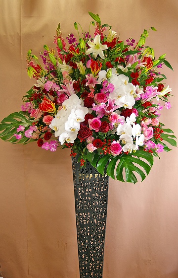 背も高く、ボリュームがあるスタンド生花は、贈り先のお店・イベント等の宣伝にも効果を期待できます。