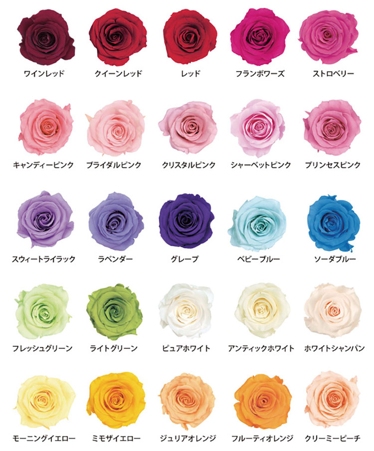 ※プリザーブドフラワーは生のお花を使用しております為、同じカラーでも入荷時期によって若干色味が変わります。ご了承ください。