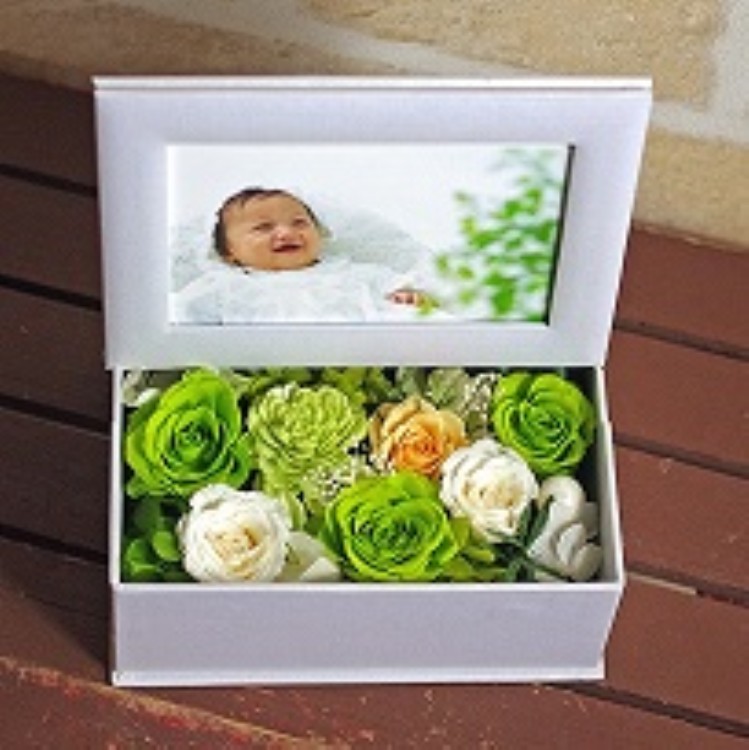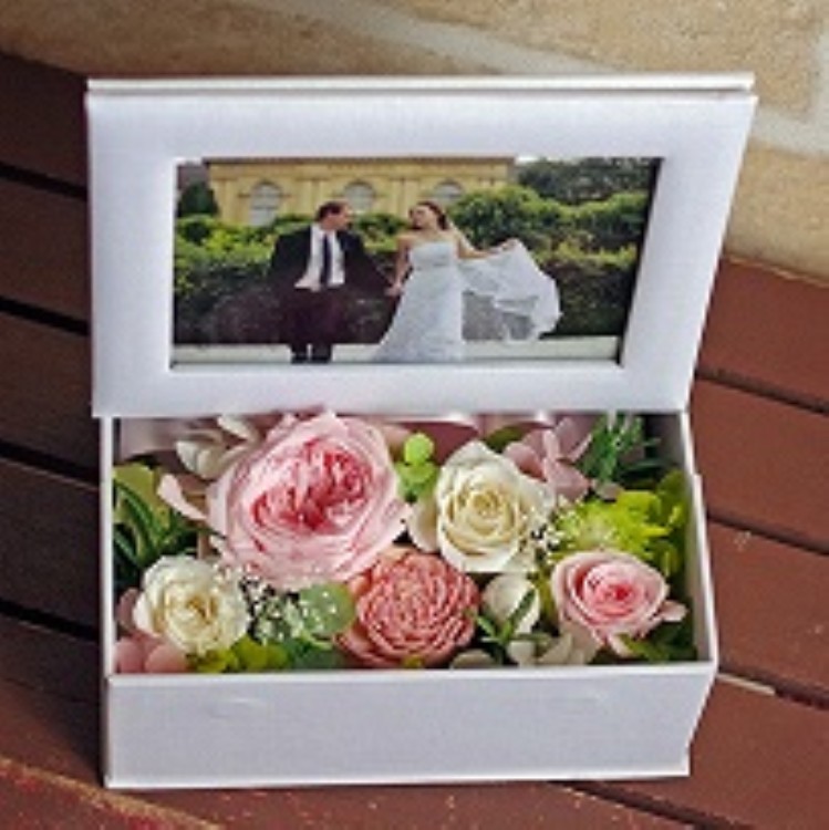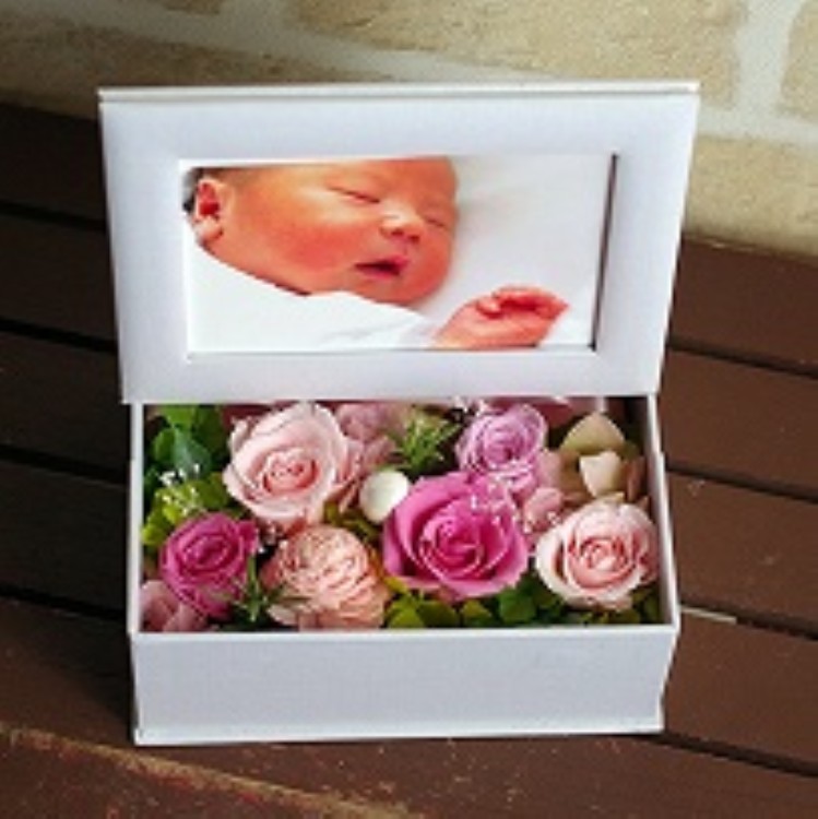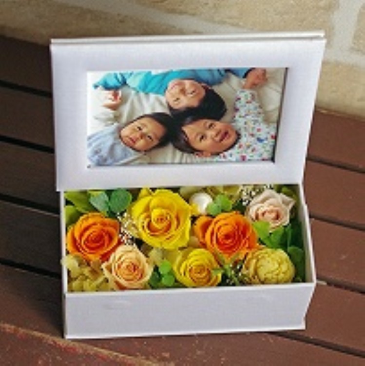喜びの気持ちを込めて、写真とお花をセットでお届けいたします。