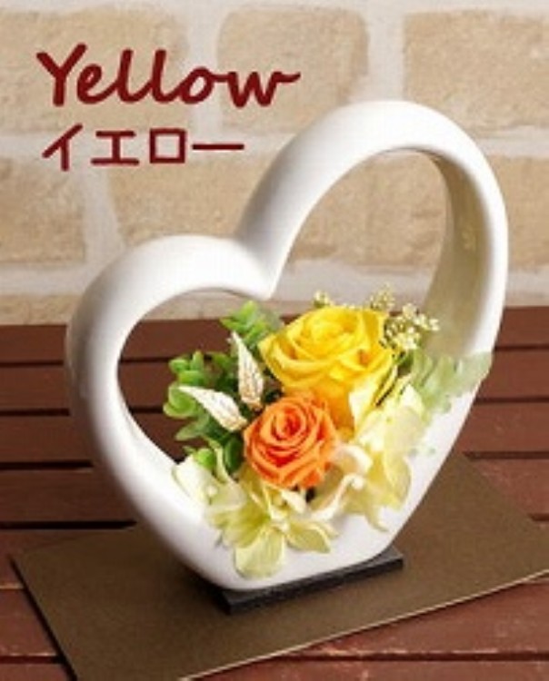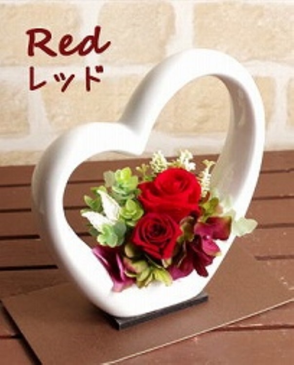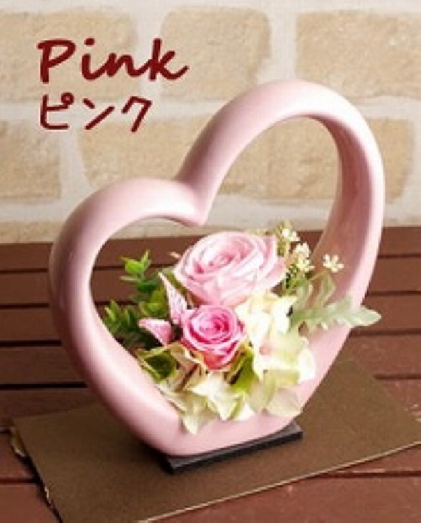 | 説明 | かわいいハート型の陶器にアレンジ。 結婚・出産のお祝いや、彼女へのプレゼントに最適♪ 置き場所を取らない、薄型のクリアケース入りで飾りやすいです。 |