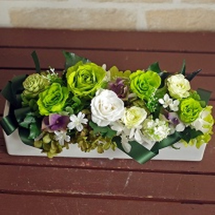 | 花材 | プリザーブドフラワー:バラ・アジサイ 造花:小花・葉物 等 *器のデザイン、花の色味・花材&資材の一部が変更になる場合がございます。 *個々のお客様のモニターによって、色味が異なる場合がございます。ご了承ください。 |
