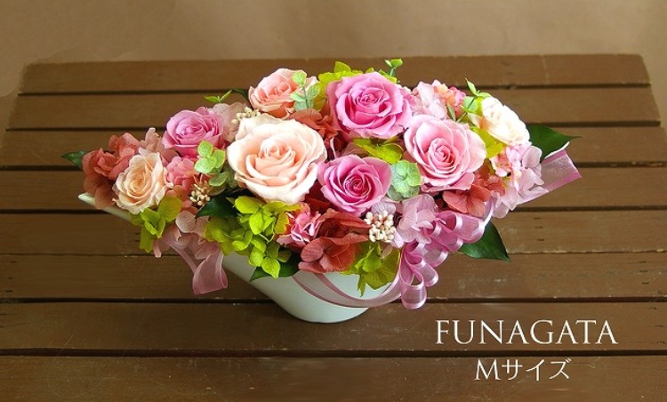 | 花材 | プリザーブドフラワー:バラ・アジサイ等 造花:小花・葉物、等 *花器のデザイン、花の色味・花材&資材の一部が変更になる場合がございます。 *個々のお客様のモニターによって、色味が異なる場合がございます。ご了承ください。 |
