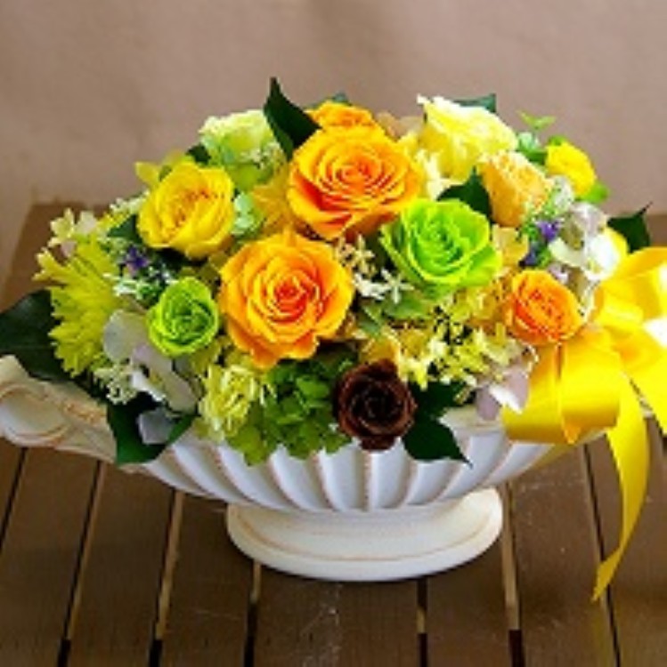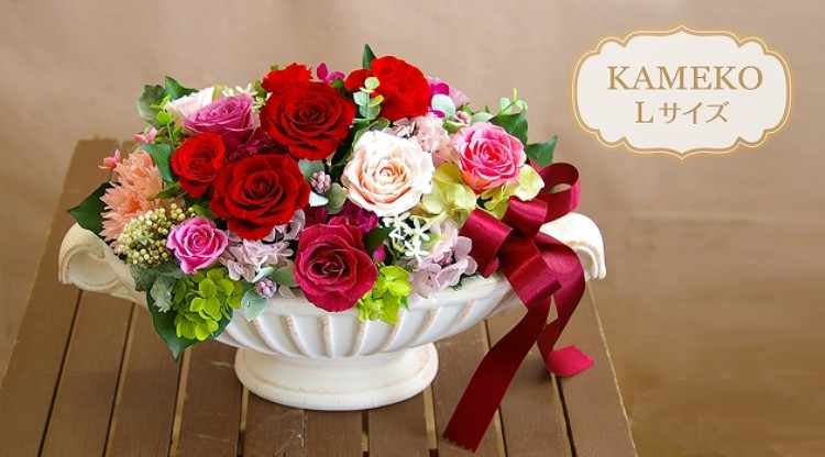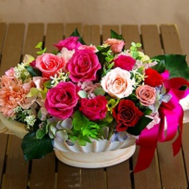 | 花材 | プリザーブドフラワー:バラ・アジサイ等 造花:小花・葉物、等 *花器のデザイン、花の色味・花材&資材の一部が変更になる場合がございます。 *個々のお客様のモニターによって、色味が異なる場合がございます。ご了承下さい。 |