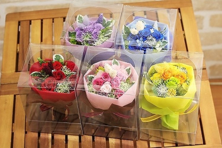 | 説明 | お手頃価格で、そのまま飾れる、花ビンの要らない花束。 クリアケース入りです。 お祝い、誕生日、発表会、送別用、などちょっとした贈り物にも最適です。 ラッピングしたままの状態で飾れます。 |