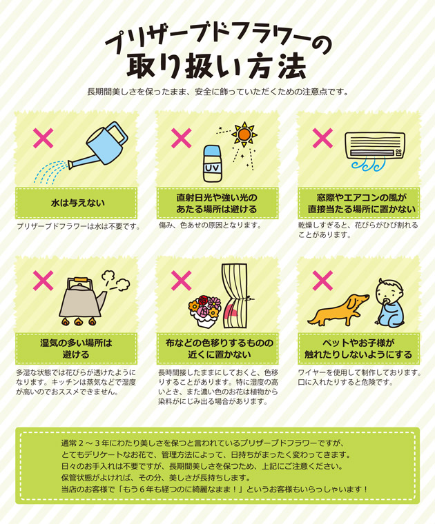 ※プリザーブドフラワーの取り扱い方法